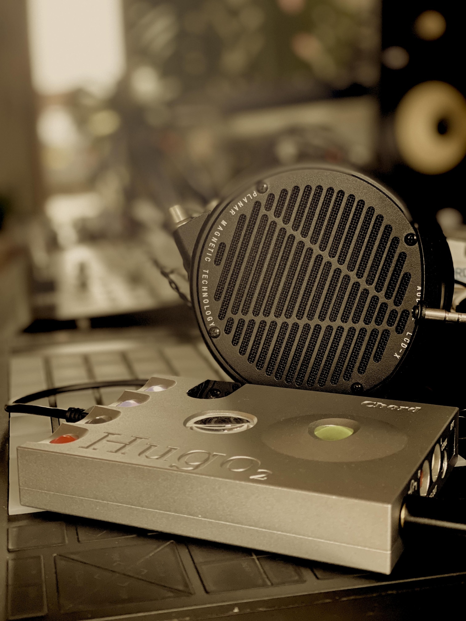 The Chord Hugo DAC paired with the Audeze LCD-X represents a reference-grade listening chain — one capable of resolving every nuance encoded in a 48K 24-bit master. The open-back planar magnetic design places you inside the composition: the spatial depth, the biophonic layers, the synthesised textures each occupying their own precise point in three-dimensional sound.